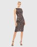 Black and Pink Draped Back Boat Neck Sequined Cocktail Dress