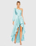 Blue Long Sleeve One Shoulder Satin High Low A-line Gown