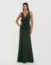 Green Crepe Sleeveless V-Neck Gown with Bow
