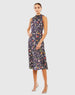 Purple Floral Print Tie Neck Midi Dress