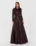 Dark Purple Long Sleeve Sequin Ball Gown With 3D Flower