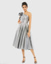 Silver One Shoulder Bow Midi Dress