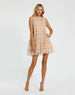 Beige Sleeveless High Neck Beaded Ruffle Mini Dress