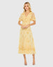 Yellow Floral Embellished Flutter Sleeve Tiered Dress