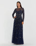 Navy Long Sleeve Crystal Embellished Evening Gown