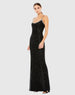 Stunning fully-beaded gown accented with a rhinestone-encrusted scoop neckline and subtle back slit.