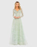 Crafted from embellished fabric, this beautiful v-neck gown features sheer long sleeves, allover heat-set crystals and a flattering a-line silhouette.
